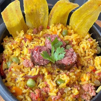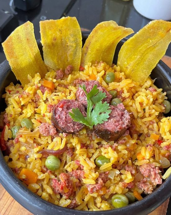 Locrio de Longaniza con Plátanos Fritos en Tiras: Un Plato Auténtico y Delicioso de la Cocina Dominicana