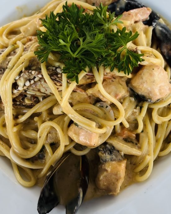 Disfruta de esta deliciosa Mariscada con Spaghetti en Salsa Blanca!