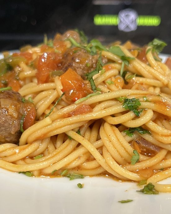 - Escurrir y mezclarlos con la salsa y las albóndigas.