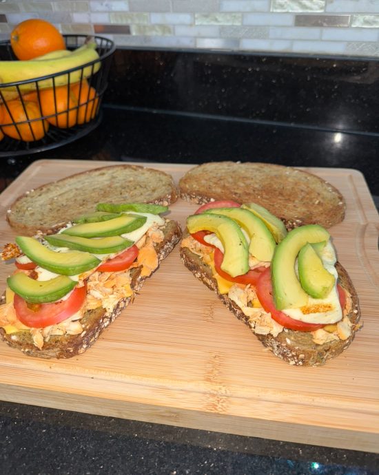 - Preparar la tostada: Tosta el pan integral en una tostadora o en una sartén. Coloca la pechuga de pollo cocida y desmenuzada sobre el pan.